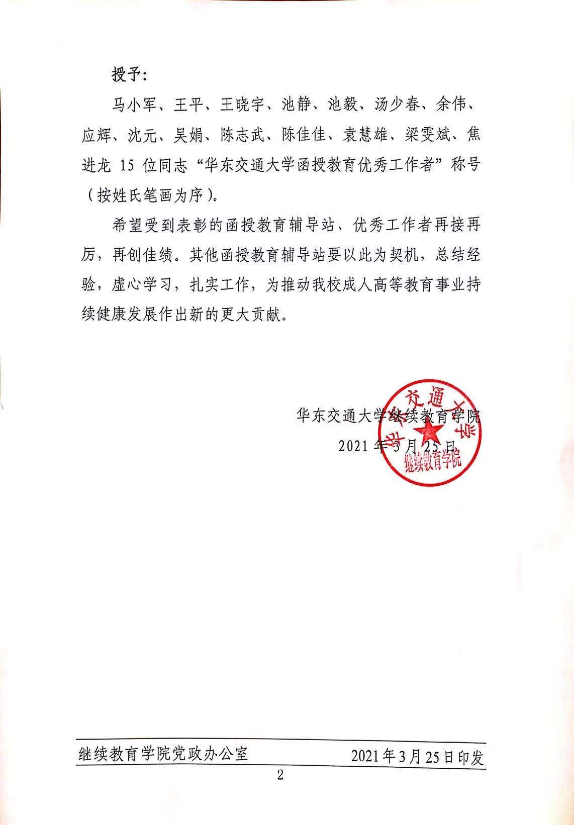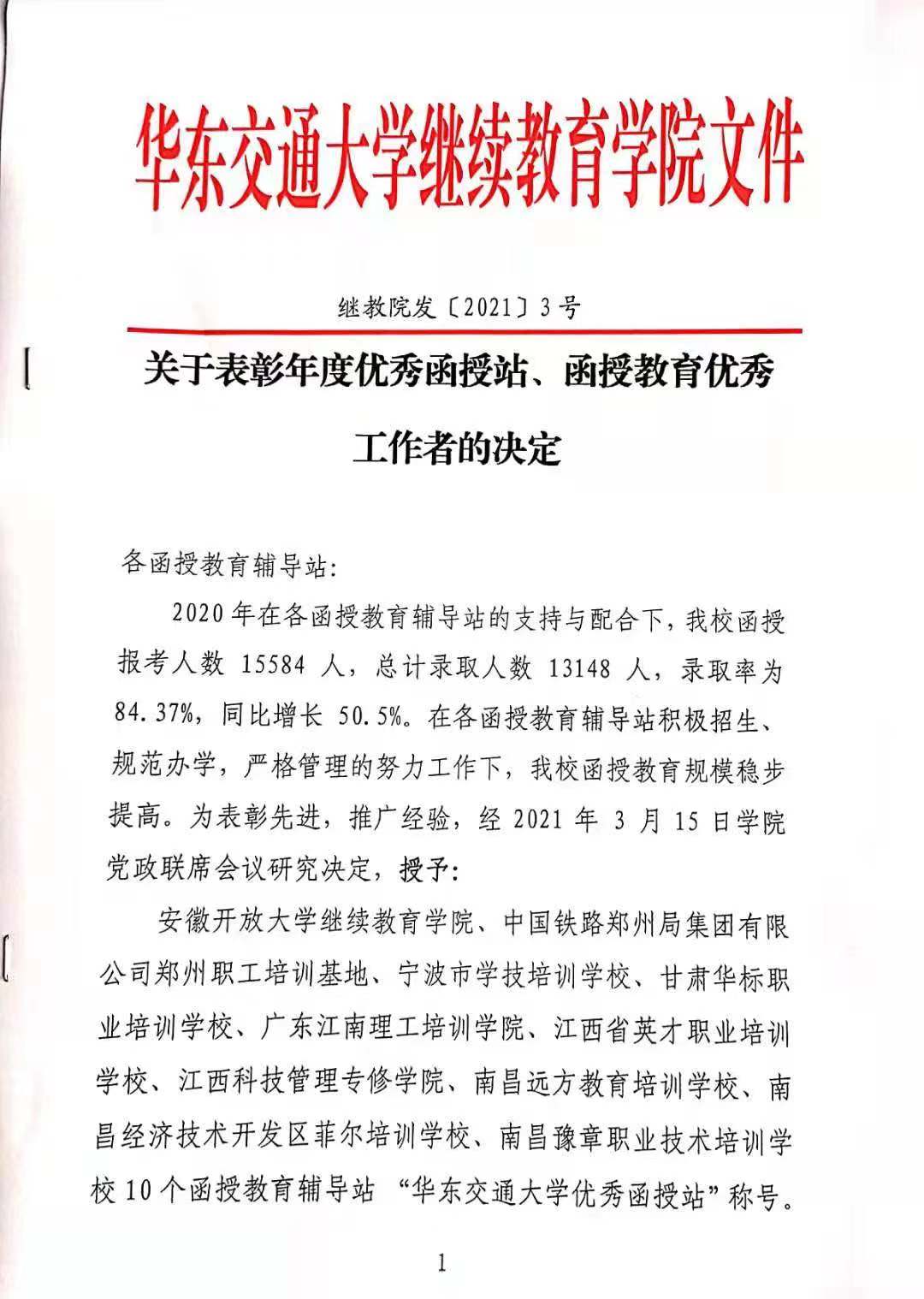 关于表彰年度优秀函授站、函授教育优秀工作者的决定