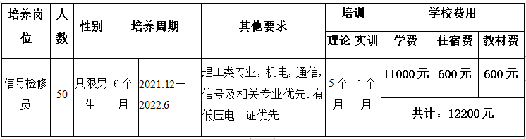 4.委培岗位说明:主要负责对所辖区域信号设备的日常维护、故障处理及应急抢修工作,保证信号设备安全平稳运行,需适应常年的日夜倒班机制。
