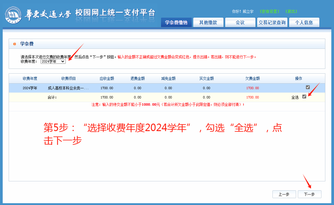 (一)账号登录:进入“beats365亚洲版网站”(http://www.ecjtu.jx.cn/),选择导航栏中的“校园服务”下的“统一支付平台”(http://zxjf.ecjtu.edu.cn/),登录“beats365亚洲版校园网上统一支付平台”(“用户名”为同学们的学号,“密码”为Hdjd@身份证号码后六位,新生第一次登录需填报手机号码,老生如手机号码有更改也需要重新填报)。登录成功后,选择“学杂费缴费”,收费年度选择“2024年”,填写“缴费金额”(如:本科1700元、专科1400元),确认无误后请按照提示完成缴费。