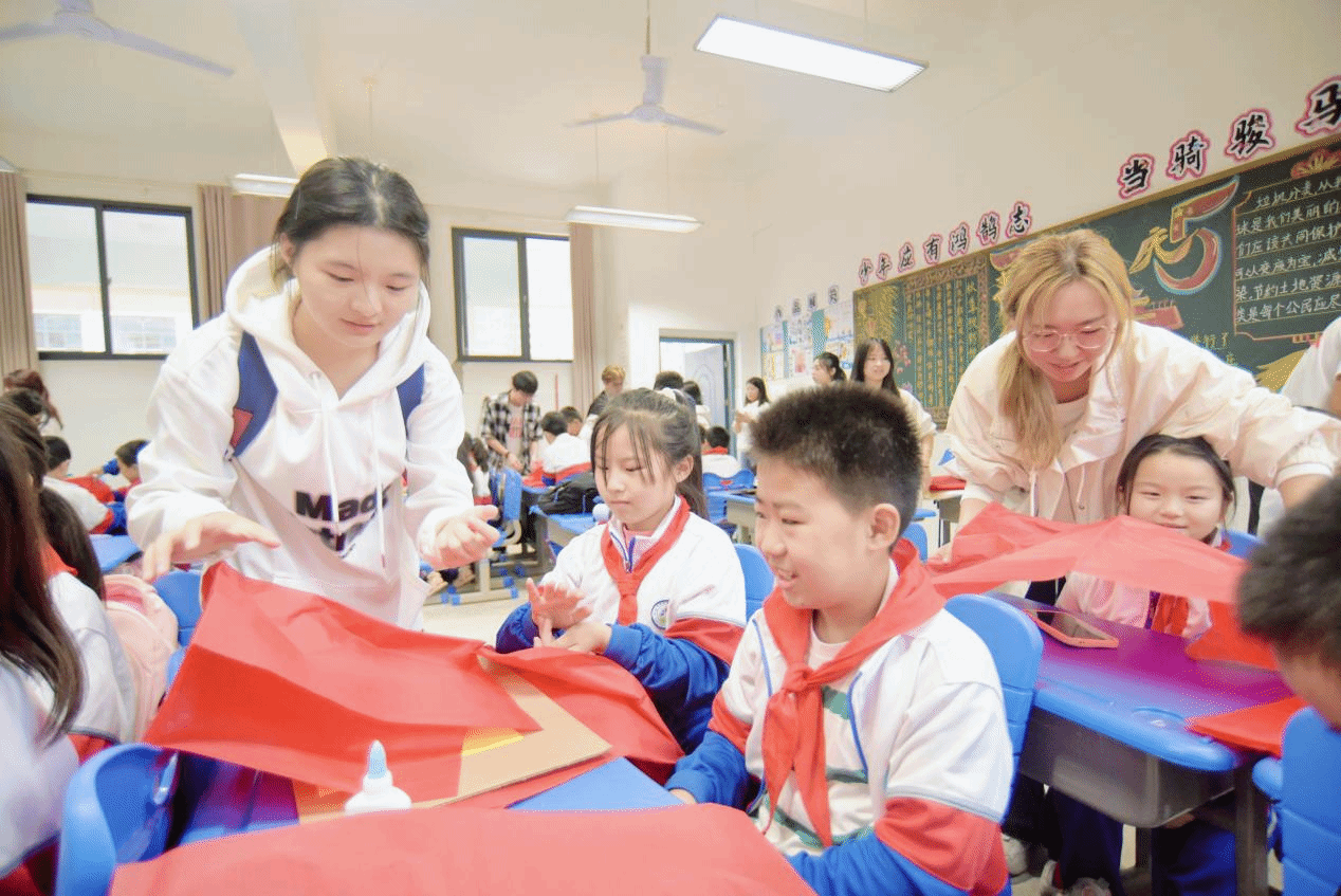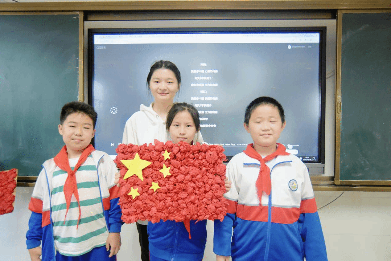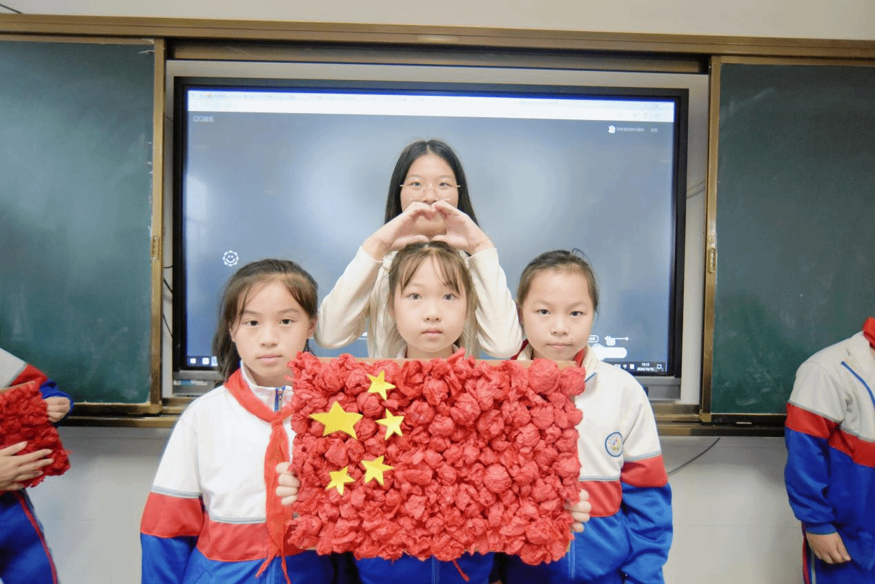 最后,全体学员带领小朋友们围绕国庆主题制作手工作品。从简单纸板到精美国旗,孩子们在创造中感受到了民族荣誉感。这不仅是一次简单的手工制作,更是一次心灵与心灵的对话,一次对祖国深情的告白。当他们高举着自己的作品,与公司世纪英才班学员并肩合影时,在镜头定格的那一瞬,孩子们的笑脸与手中的红旗交相辉映,构成了一幅最美的画卷,那是对祖国母亲最为真挚的礼赞。