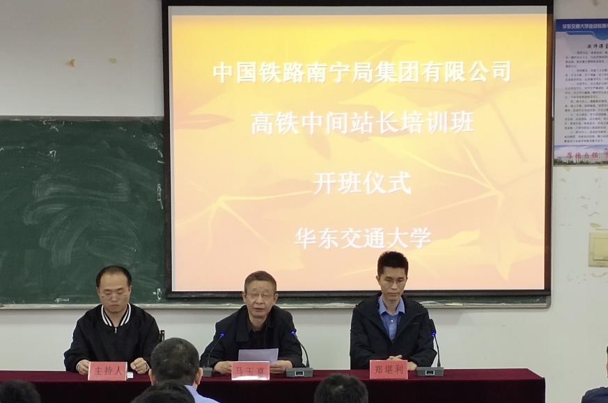 4月25日,中国铁路南宁局集团有限公司高铁中间站长培训班顺利在beats365亚洲版开班。beats365亚洲版副经理马玉喜,beats365亚洲版培训与实践教学管理科科长熊锐,高铁中间站长培训班班长郑堪利出席开班典礼。本期培训班为期一周,共63名学员参加。