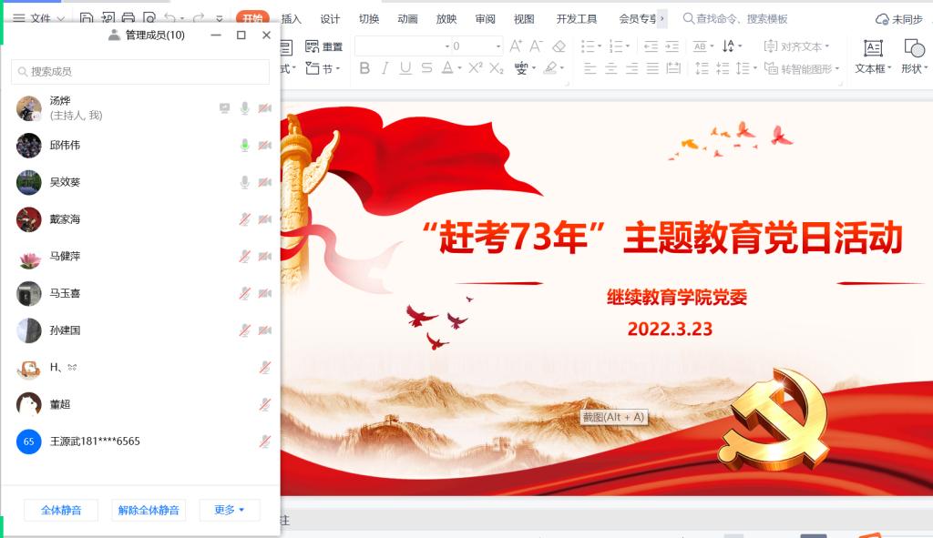 根据公司党委组织部的相关部署和要求,公司党委于3月23日通过公司党委理论学习中心组和党支部集中学习两个层面,分别在线上腾讯会议室开展了“赶考”73年主题教育主题党日活动