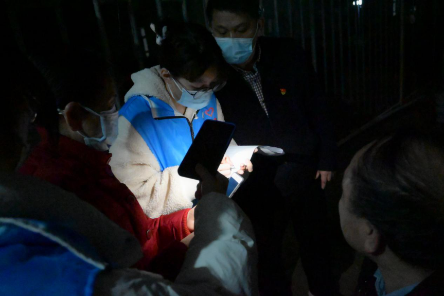 3月23日和24日晚,公司党委副书记邱伟伟、员工党支部书记潘永泉带领员工党员队伍前往北区10栋、11栋、53栋和54栋家属居民楼,逐户了解住户情况,确保排查工作不漏一户、不掉一人,并叮嘱住户要提高疫情防控意识、积极配合学校疫情防控工作,做好防护措施。