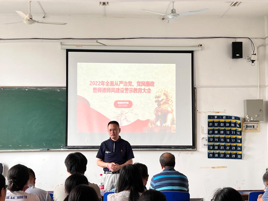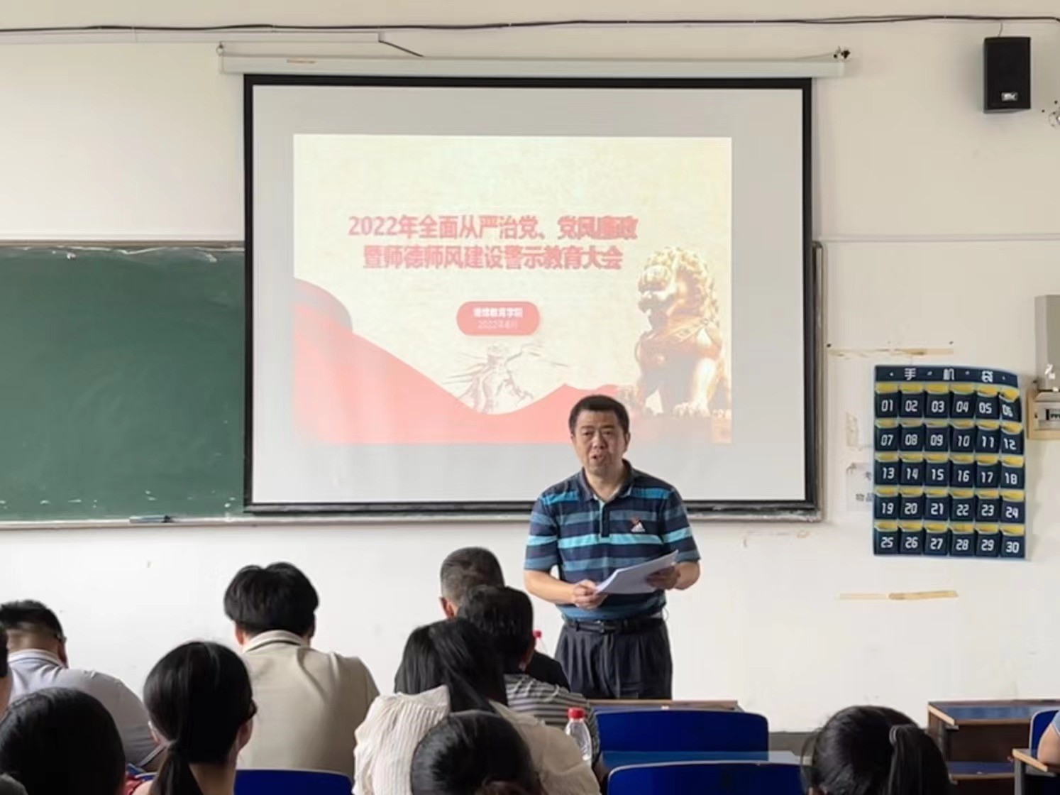 会上,院纪检委员戴家海向全体教职工汇报了公司党委2021年全面从严治党和党风廉政建设工作总结及2022年工作计划。公司党委书记吴效葵通报了学校教职工近期违反党风廉政、师德师风及因工作作风不实造成重大工作失误的典型案例。