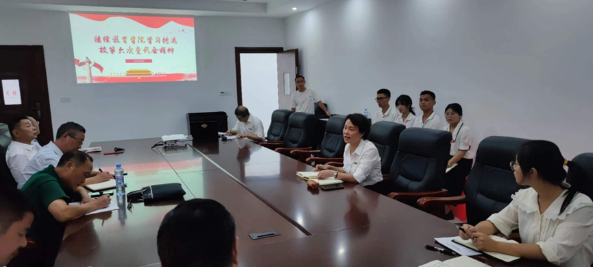 2022年9月13日下午3:00,在进贤教学点综合楼514会议室,公司党委传达校第六次党代会精神,组织全体教职工学习。公司党委书记吴效葵主持会议。