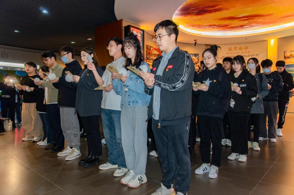 新四军军部旧址不仅使我们得以走近英雄、铭记岁月,其中所涵养的奋斗精神更能助吾辈青年扎根千尺,驰骋万里。为表达对革命先烈的缅怀之情,全体人员在新四军军部旧址纪念广场献花、祭奠、默哀;在多功能厅进行祭英烈留言寄语等馆内特色活动,以此表达对英雄先烈的致敬与崇敬。通过本次祭奠英烈活动,全体党员、团员同志明白:今日之幸福生活是先烈们用生命和鲜血所换取的,他们的英雄主义精神会绵延不息,代代相传,激励一代又一代人不断探索,不断进取,中华儿女务必要为实现自己所肩负的历史责任和使命而努力!