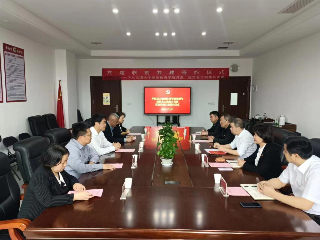 为全面落实新时代党的建设总体要求,创新基层党建工作载体,提升党建联创共建合力,不断强化党建工作的政治引领作用,促进基层党建工作提质增效,4月14日上午,公司党委与进贤县三阳集乡党委举行了党建联创共建签约仪式。签约仪式由公司党委书记吴效葵主持,经理田艳霞,副经理王源武、戴家海、裘友林,三阳集乡党委书记于超,党委副书记(乡长)文卫锋,党委副书记王卓,党委委员(副乡长)帅开明,党委委员万会文,党委委员占贵凤出席会议。