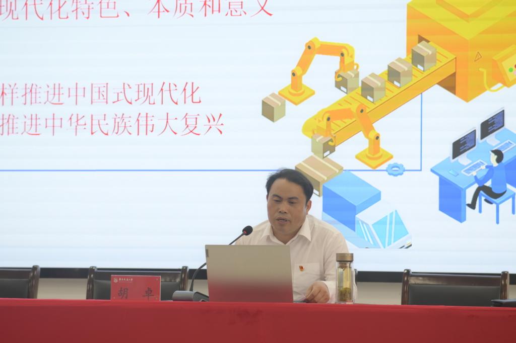 胡卓以“以中国式现代化全面推进中华民族伟大复兴”为主题,围绕什么是现代化,什么是中国式现代化,怎样以中国式现代化全面推进中华民族伟大复兴三个方面深刻阐释了中国式现代化的科学内涵。他强调以中国式现代化全面推进中华民族伟大复兴,必须全面贯彻落实党的二十大精神,深刻领悟“两个确立”的决定性意义,增强“四个意识”、坚定“四个自信”、做到“两个维护”,要以“咬定青山不放松”的韧劲、“不破楼兰终不还”的拼劲,沿着中国式现代化这条康庄大道奋勇前进,就一定能实现中华民族伟大复兴的宏伟夙愿。本次党建联创共建活动,按照资源共享,优势互补原则,注重实效,发挥党建共建合力,不断提高基层党组织的创造力、凝聚力和战斗力,为推进党建工作和业务工作双提升,形成基层党建工作新格局奠定了坚实的基础。