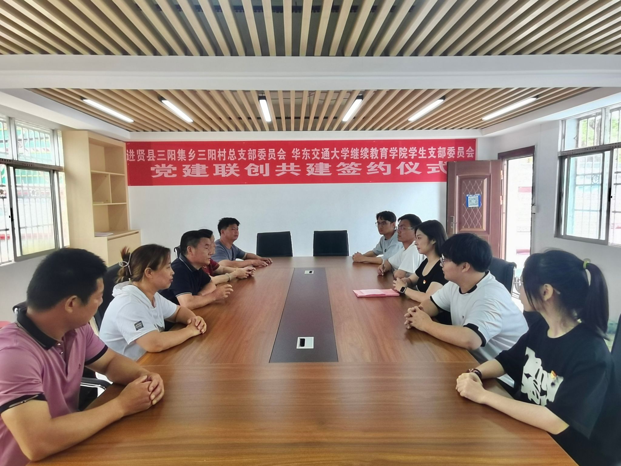 为贯彻落实党的二十大精神,深入学习习近平新时代中国特色社会主义思想和系列重要讲话精神,全面推进双方党组织建设,搭建党建共建平台,形成“共建组织、共同合作、共享资源”的党建工作新格局,5月31日上午,beats365亚洲版员工党支部与进贤县三阳集乡三阳村党总支举行党建联创共建签约仪式。beats365亚洲版员工党支部书记黄雍,进贤县三阳集乡三阳村党总支书记樊友胜、副书记樊文结出席了签约仪式并交流发言。