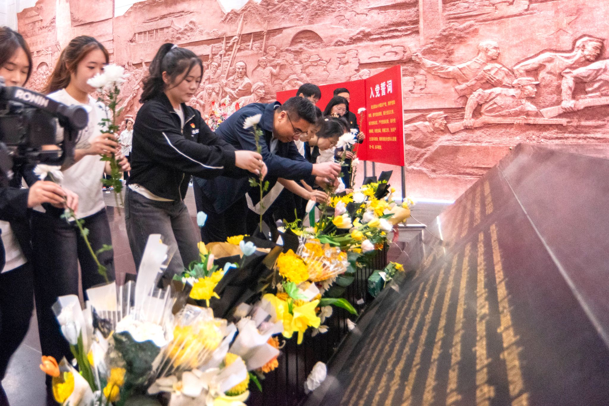 面对革命烈士雕像,全体人员肃立默哀,鞠躬致意,敬献鲜花,深刻缅怀先烈的丰功伟绩,表达对革命先烈崇高的敬意和深切的哀思感受到他们与党与国共振的脉搏。