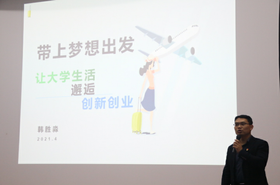 在随后创新创业培训中,校团委创新创业中心韩胜淼老师与台下观众通过互动问答的方式,从“你的梦想”,“你所知道的创新创业”和“梦想与创业能否一路同行”等话题,将梦想-创新-创业三者的关系进行阐述,并列举众多创新创业的成功案例,让在场的同学们对当今创新创业,尤其是老员工的创新创业有了更加深刻的认识。