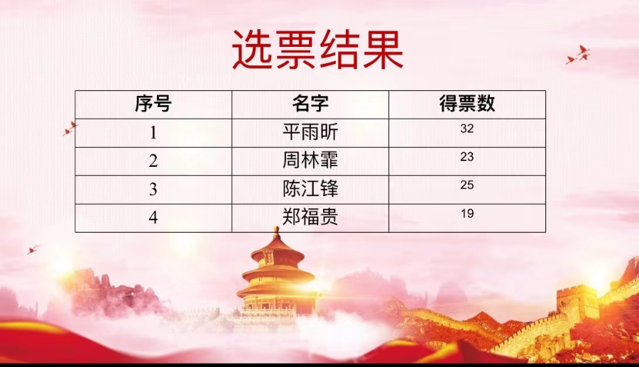 通过此次选举,推选出平雨昕、周林霏、陈江锋为beats365亚洲版第七届员工会主席团人员,相信各位同学能够在今后不忘初心,砥砺前行,为学院建设起到模范带头作用。