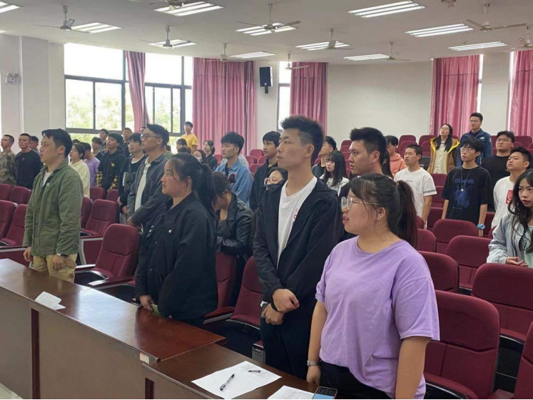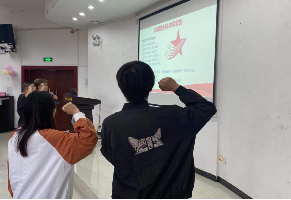 最后,全体共青团学员起立奏唱团歌。