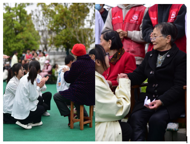 活动节目结束后,一位老奶奶拉着志愿者的手说道:“小姑娘,有你们的关心和关怀,我们非常开心,我们非常感谢你们的到来,感谢你们精彩的节目。”