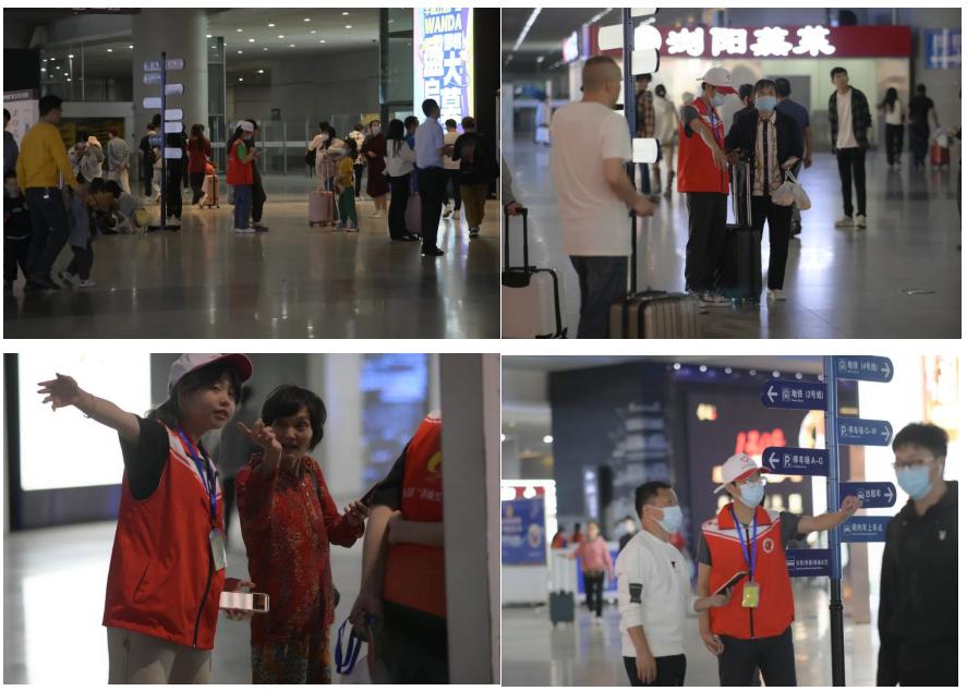 当天上午,志愿者们按时到达指定地点,服饰统一,在车站相关负责人的安排下,站好各自的岗位。检票口、安检口、进出站口都活跃着志愿者的身影。在服务过程中,各志愿者为旅客们解答如何换乘、出站方向、乘坐公交车路线等各种常见问题,协助解决许多旅客的困难,给予来往的旅客爱心帮助,维护火车站各处的良好秩序。