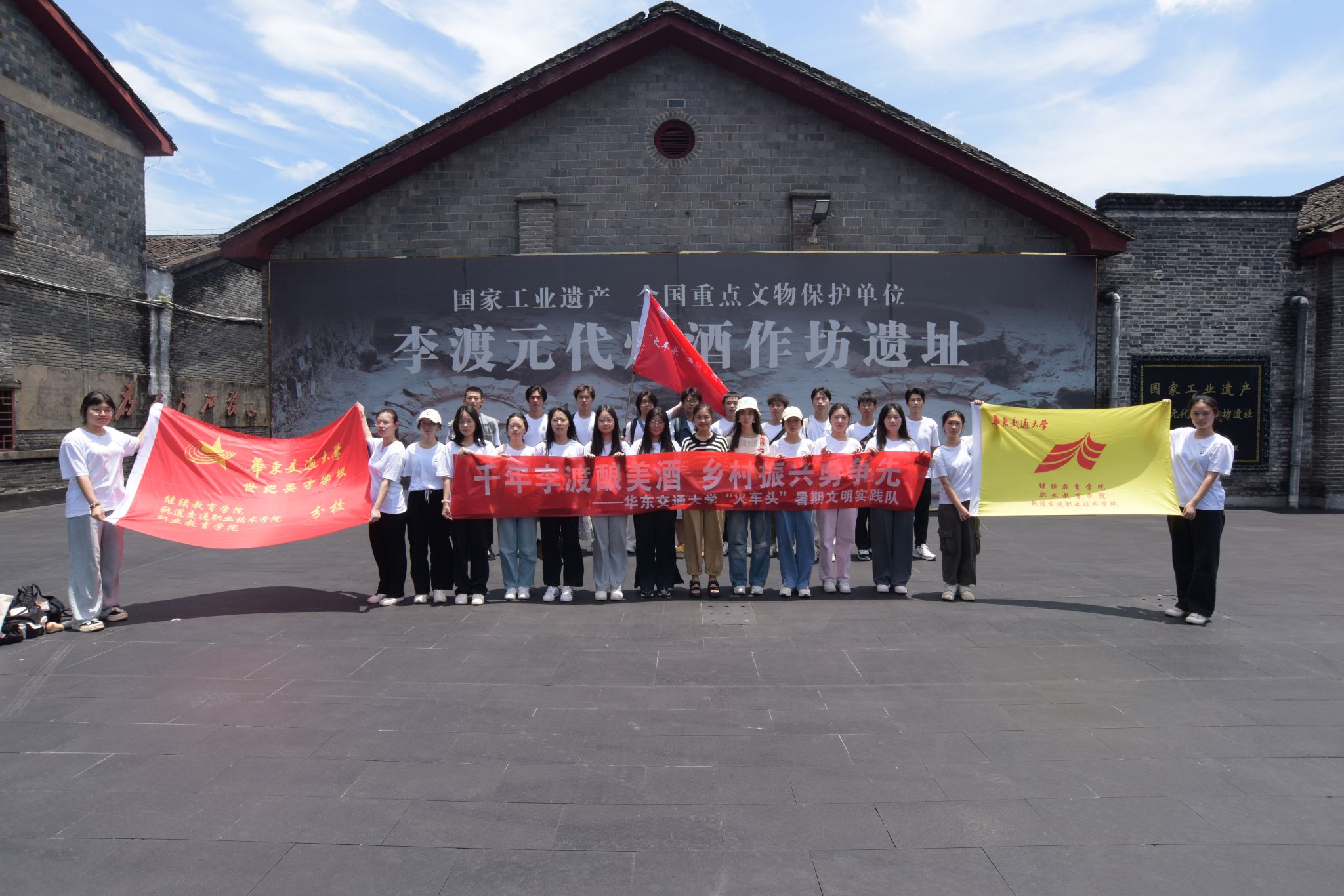 为探寻传统文化的传承及红色基因的赓续,2023年7月1日,beats365亚洲版“火车头”老员工暑期社会实践队第一分队赴进贤县李渡镇李渡元代烧酒作坊遗址参观调研,深入了解李渡酒的酿造工艺及其独特的历史文化,探讨李渡酒业的创新发展道路。