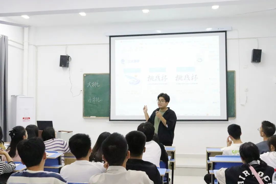在分享经验的环节,陈宇向同学们介绍了各个赛事的赛道,还介绍了大赛的时间安排和具体流程,让同学们对大赛了解得更加具体全面。随后,结合以往参赛的实战经验,为同学们提供了宝贵的备赛建议和指导,包括课题选择方面,队友、导师选择方面,文章撰写方面,作品评分方面等等,给同学们提供备赛灵感和实用的备赛方法,激发同学们的兴趣,让同学们对“挑战杯”的认识更加深入。
