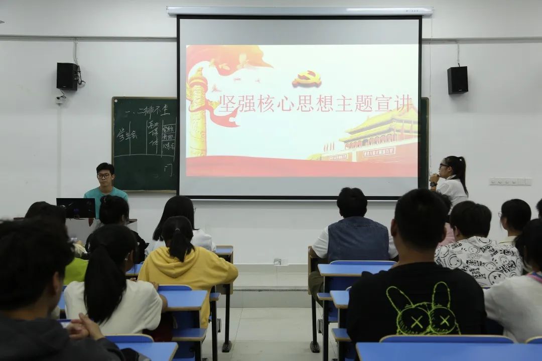 主讲人李雯静同学围绕坚强核心思想为主题,从一代代中国青年勇担使命、接续奋斗讲起,号召新时代的青年要坚定理想信念,发扬奋斗精神,勇做时代先峰。