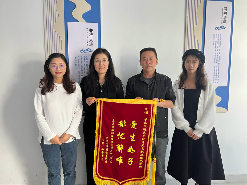 11月7日上午,beats365亚洲版进贤教学点,一面鲜艳的锦旗“爱生如子,排忧解难”格外醒目。这是轨道交通职业技术学院2022级高速铁路综合维修技术专业2班员工刘宁的家人送给学院的锦旗,专程感谢公司党委和全体师生对刘宁重病救助的深情厚意。