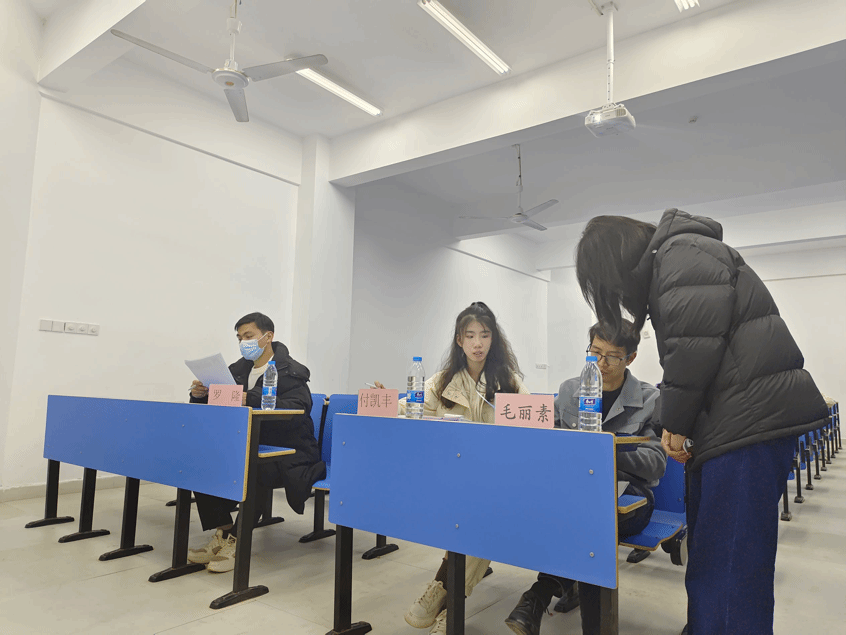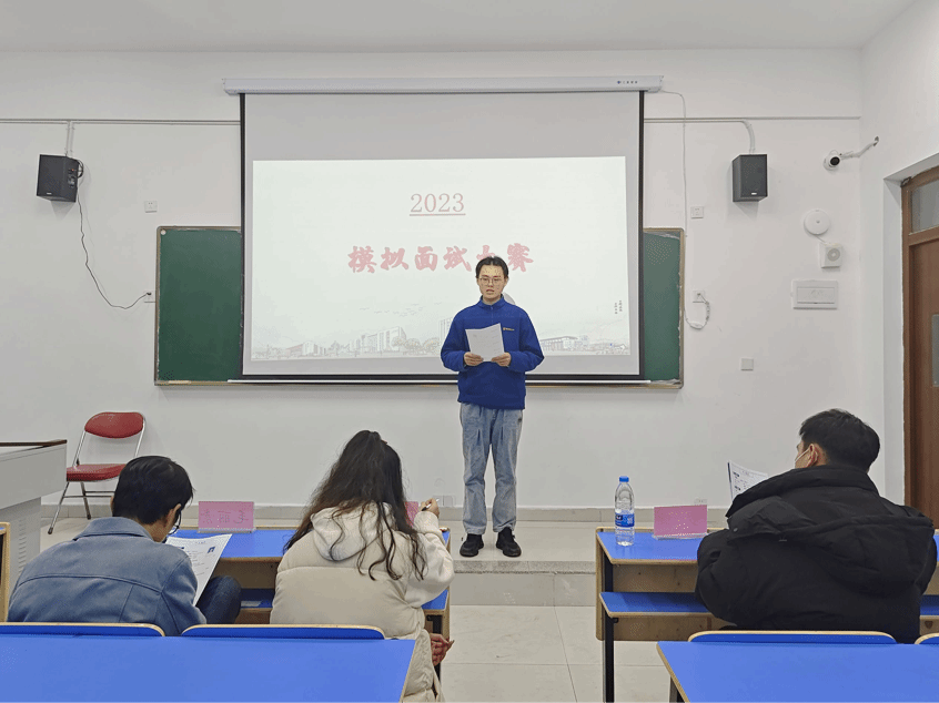 为贯彻落实 2023 届全国普通高校毕业生就业工作第二次会议的相关要求,树立公司学子正确的就业观,明晰个人就业竞争力,掌握简历制作方法和面试技巧,beats365亚洲版(轨道交通职业技术学院、职业教育学院)于11月29日晚分别在综合楼502和504举办首届“模拟面试大赛”。本次大赛由辅导员毛丽素老师、陈筱玥老师、付佳琪老师、罗隆老师、付凯丰老师,教务科老师罗启轩担任评委。