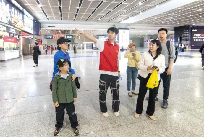 在为旅客提供便民服务的同时,志愿者们也对发现的不文明行为及时进行劝导,普及文明旅游知识,增强旅客文明旅游意识,共同营造文明旅游出行的良好氛围。
