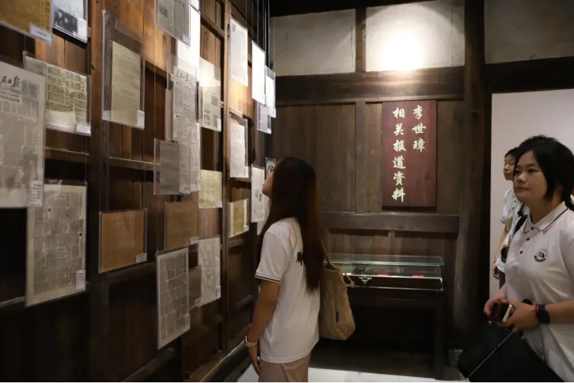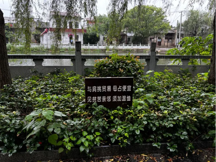 随后,实践队前往李瑞清纪念馆进行参观研学。作为清末民初的杰出书画家和教育家,李瑞清不仅以其卓越的艺术成就闻名遐迩,更以其家族所秉持的正直、简朴等家风而深受后人敬仰。他留下的校训“嚼得菜根,做得大事”的治学精神以及“教育立家、修身齐家、勤俭持家、报国安家、清廉传家、新风兴家”的家风家训更是绵延至今。实践队队员们发现,在李瑞清老先生的家风家训影响下,杨溪李家随处可见标有村规民约的小立牌。“感觉整个杨溪李家都受到这种家风文化的影响,我们也要从自己做起,从身边的点滴小事做起,传承家风文化,传承中华民族传统美德。”实践队队员王延晨说道。
