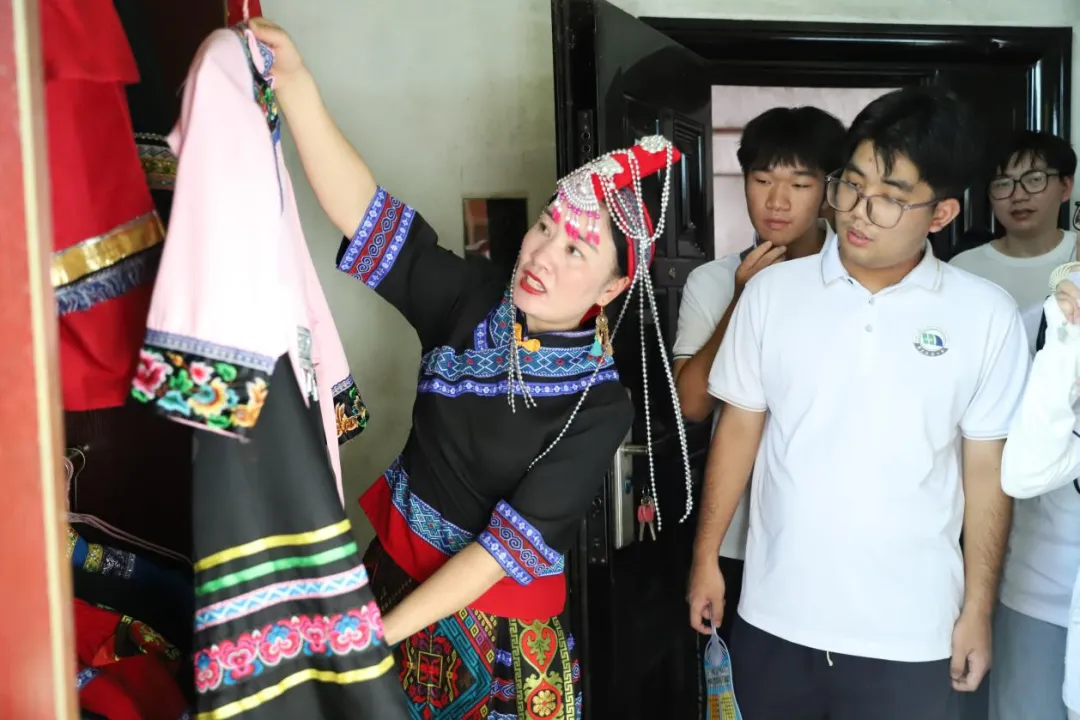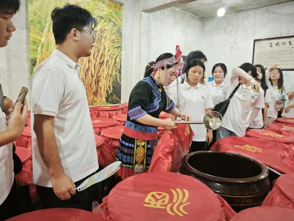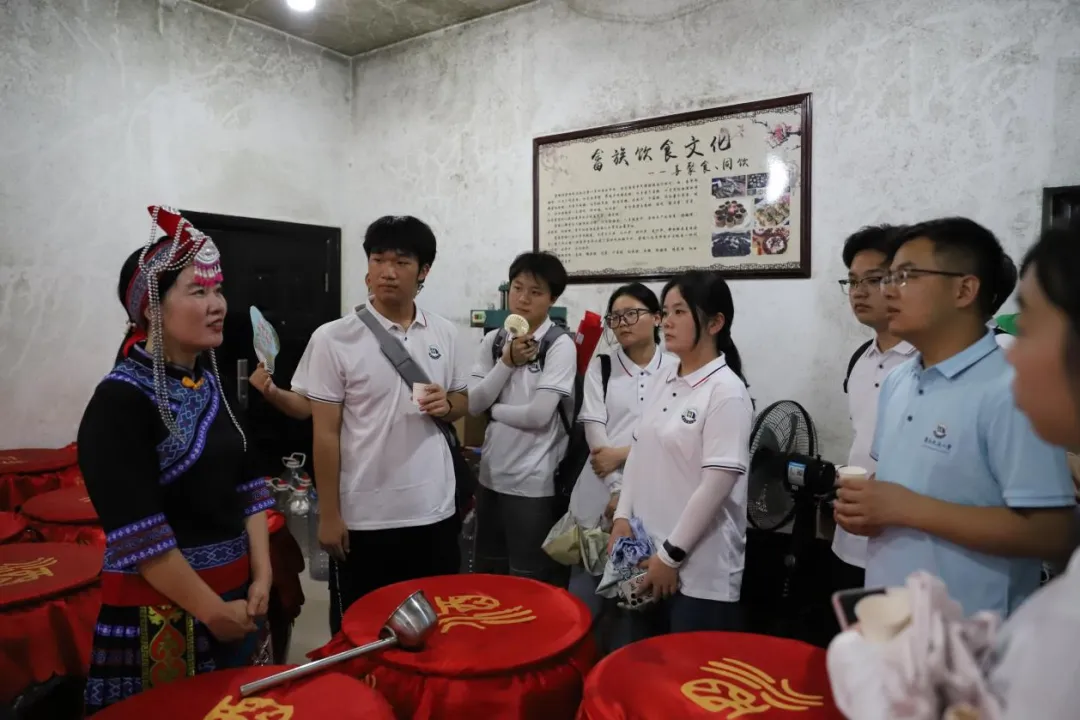 聚民族魂,扬爱国心。实践队一行人于7月3日前往南昌市唯一民族村——进贤县池溪乡畲族蓝家村,访问了畲族特色米酒产业“灶婆婆米酒”品牌创办人蓝春花。在蓝春花的介绍下,队员们对畲族精细的米酒酿造过程和口味醇厚的米酒感到惊叹,为畲族美轮美奂的服饰和凤凰头冠感到欢欣,同时也在知晓有些民族传统文化习俗已经出现“汉化”时感到些许遗憾……同样,实践队队员们了解到蓝家村的迁移发展,感受畲族跋山涉水的艰辛,远离故地的落寞,更被畲族人民自立自强,咬牙坚挺,在新时代重新找到了自己的发展目标,共同助力中华民族伟大复兴的精神所感动。此次追寻畲族发展的脚步,映入眼帘的不仅是畲族人民为家园建设持续地发光发热,还有他们历久弥新的传承风尚,实践队队员们始终相信,在坚持党的领导下,各民族手挽着手、肩并着肩,共同努力奋斗的前提下,从历史纵深处走来的民族文化,赓续着民族智慧,在结合时代特点与现实诉求中必将焕发生机。