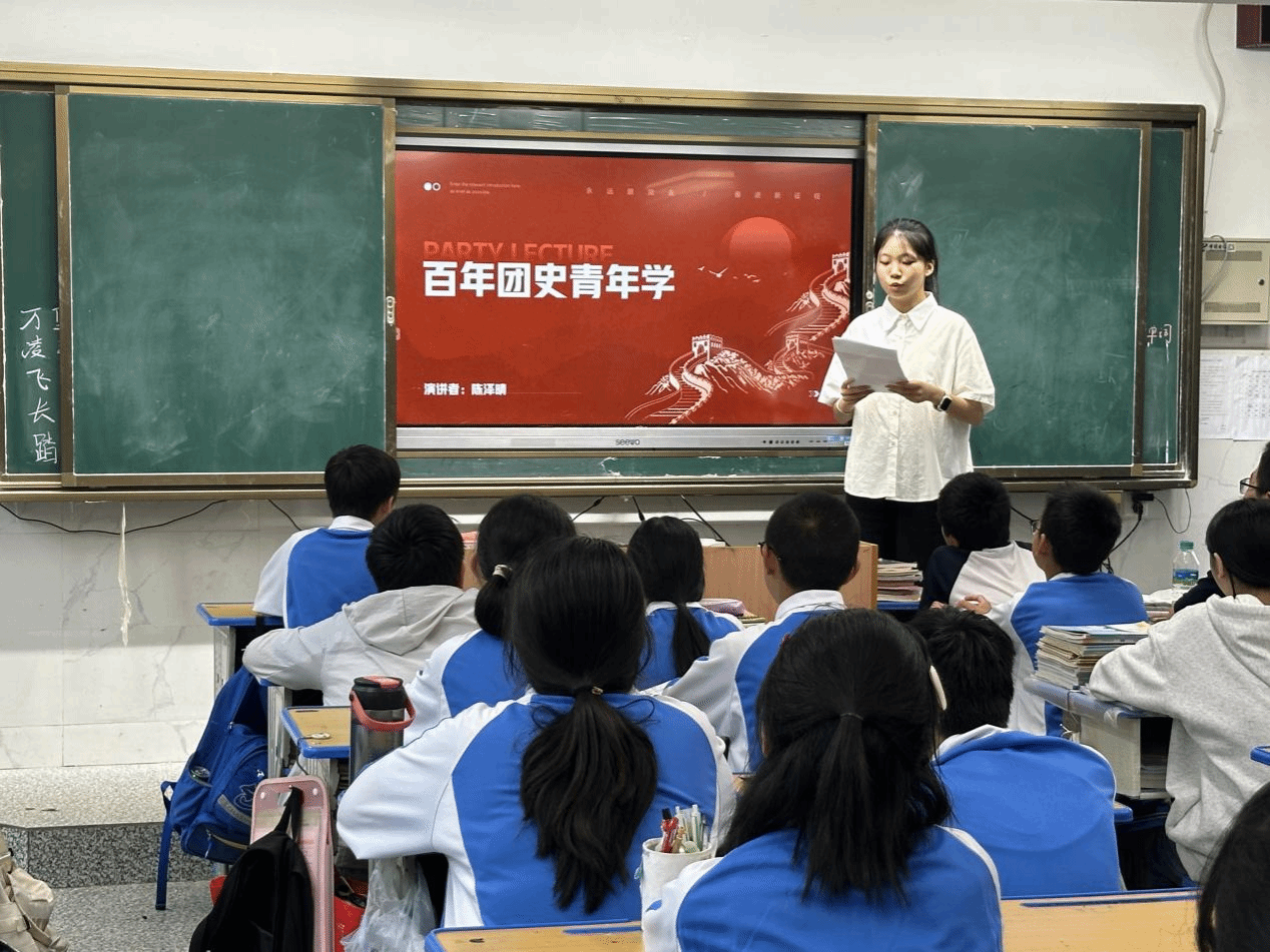 中国共产主义青年团是中国青年运动的先锋队,自其诞生以来,始终站在时代的前列,为中国的革命、建设和改革事业贡献者青春力量。团员代表陈泽晴为大家讲述了以“百年团史青年学”为主题的微团课,分别从团的历史征程、思想建设、组织变革和成就与挑战四个方面让同学们对共青团有一个深入的了解。她激励大家在新时代的背景下,勇立潮头,敢为人先,积极向团组织靠拢,投身于国家建设和社会发展。