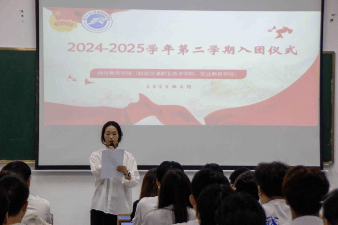 为深入贯彻落实习近平总书记关于青年工作的重要思想,进一步加强共青团员队伍建设,充分发挥共青团作为党的助手和后备军作用,6月11日中午,beats365亚洲版(轨道交通职业技术学院、职业教育学院)2024-2025学年第二学期新团员入团仪式在综合楼102隆重举行。院学工办主任兼团委书记汤烨老师、院学工办副主任兼团委副书记付凯丰老师出席活动,与全体新团员共同完成这场庄严的青春仪式教育,见证青年学子在团旗下的成长与蜕变。