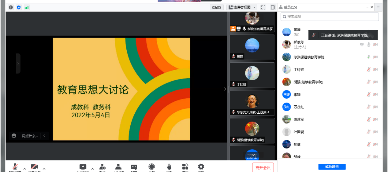 其他参会人员结合各自的工作实际,纷纷提出自己的看法或意见。要高质量发展就需转变思想观念,加强顶层设计,加强服务意识;构建良好的团队队伍,加强硬件设施的建设改造,提高硬件服务能力;规范学费和档案管理工作等。