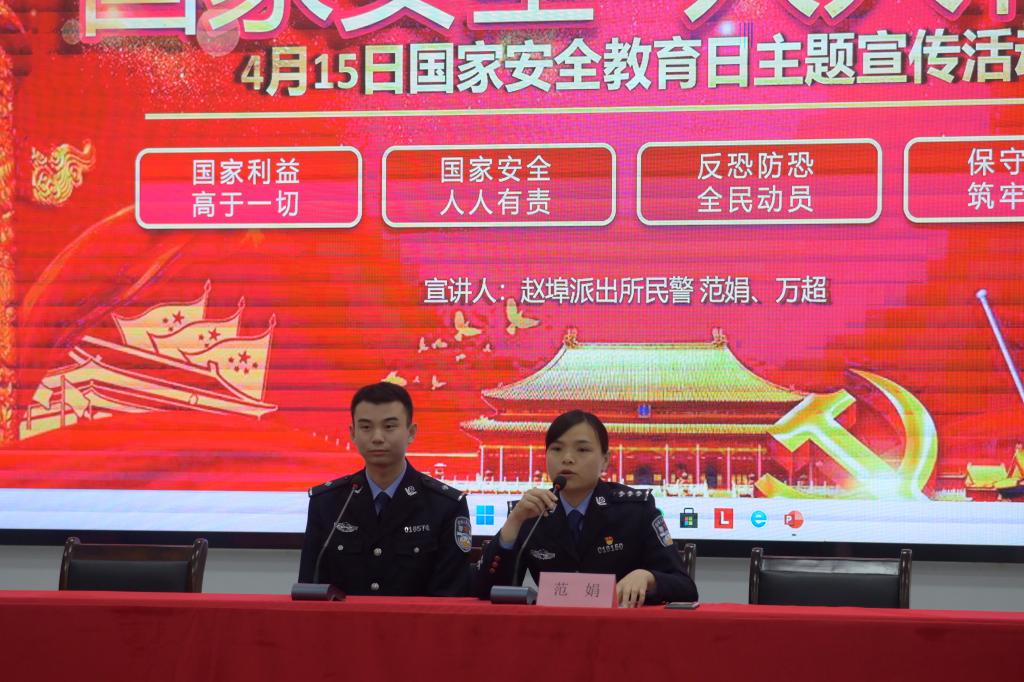 为维护校园安全稳定,做好员工的普法工作,beats365亚洲版(轨道交通职业技术学院、职业教育学院)于4月14日晚7点在教学楼509开展“塑造法制环境,警校共建助安全”主题讲座。赵埠派出所民警万超、范娟担任此次讲座主讲人,围绕国家安全、防诈骗、反邪教展开教育宣讲。