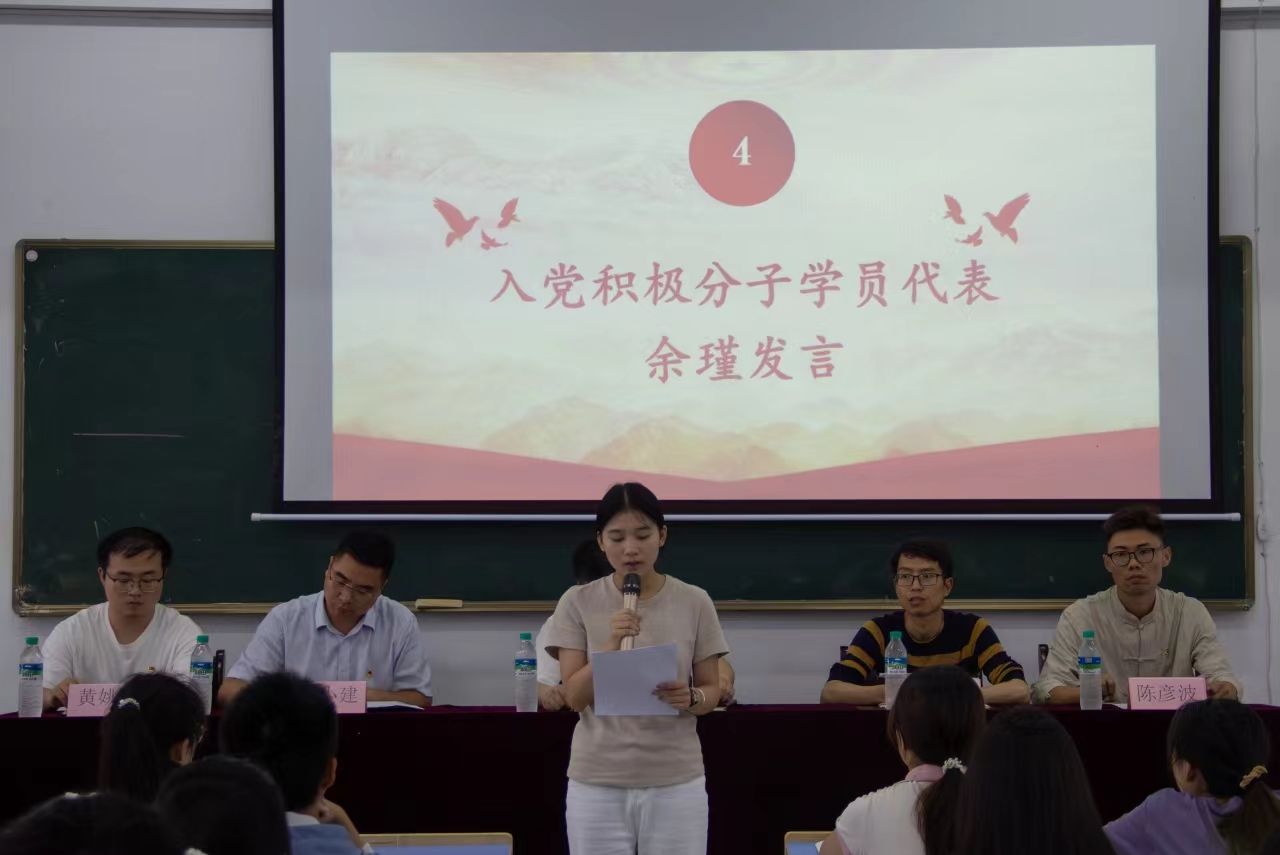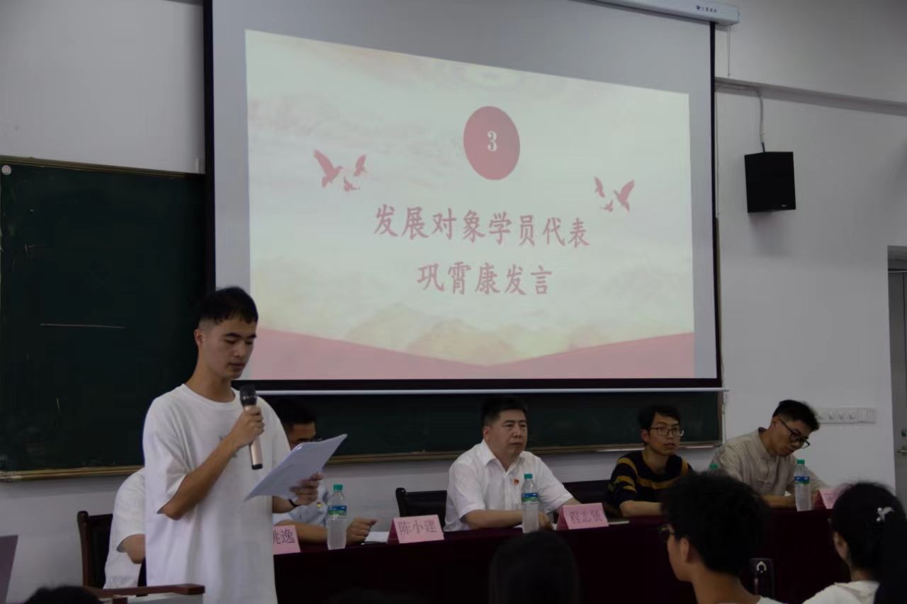 巩霄康、余瑾同学分别代表全体发展对象和全体入党积极分子作表态发言。他们表示,党课学习意义非凡,自己将始终坚定理想信念,端正学习态度,明确个人目标,用最新的理论成果指导学习实践,并以饱满的热情、高昂的斗志,积极向党组织靠拢。