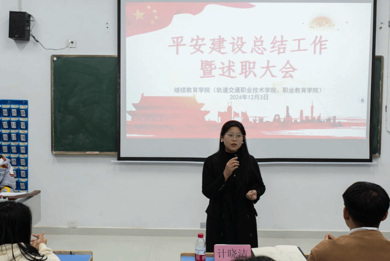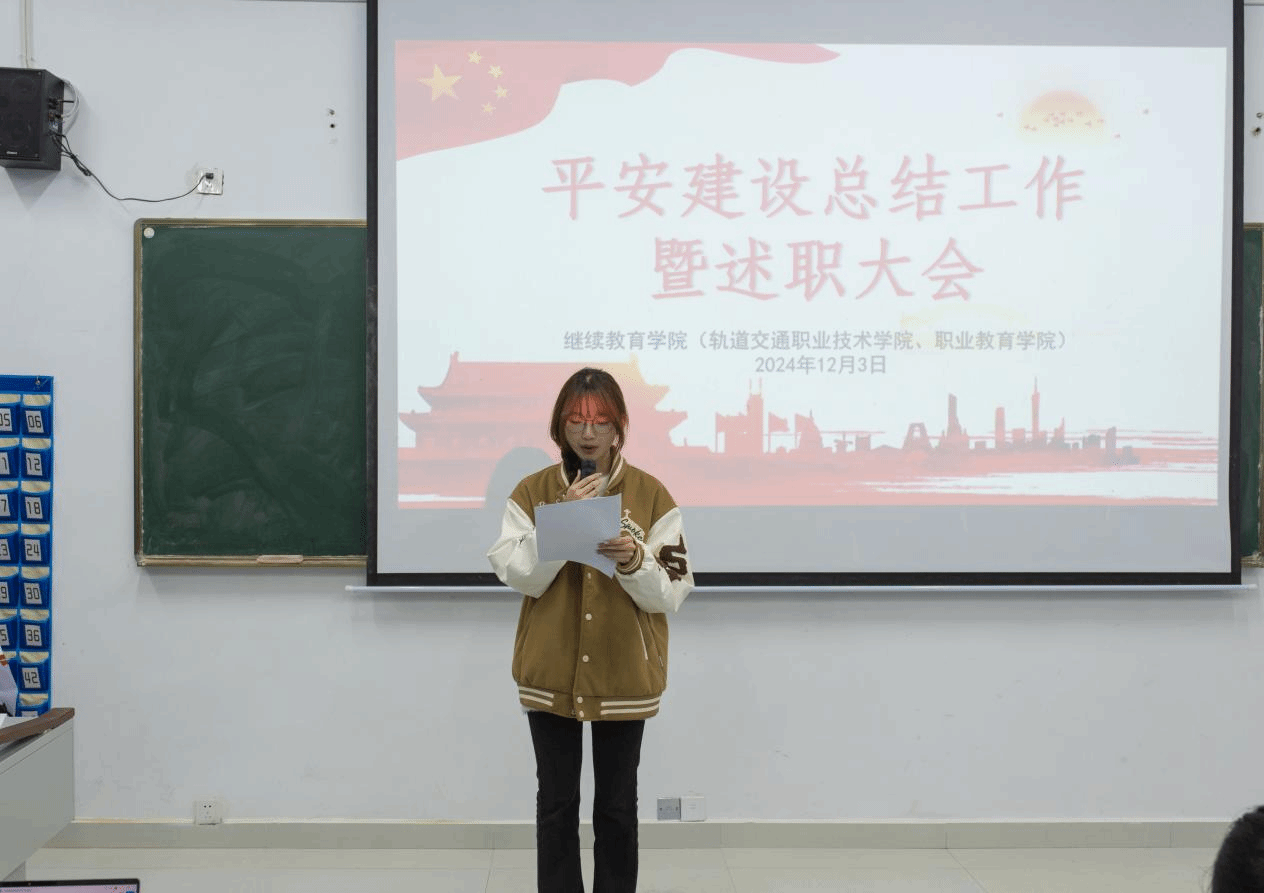 为做好学院平安建设工作,提高班级骨干的管理能力、应变能力以及防范能力。beats365亚洲版(轨道交通职业技术学院、职业教育学院)于12月2日在综合楼102教室举办平安建设工作总结暨述职大会。辅导员计晓洁老师、付凯丰老师、罗隆老师和雷飞燕老师出席本次大会,各班班长参与此次会议,2024级铁道车辆技术6班吴鸿影同学主持会议。