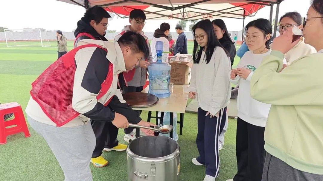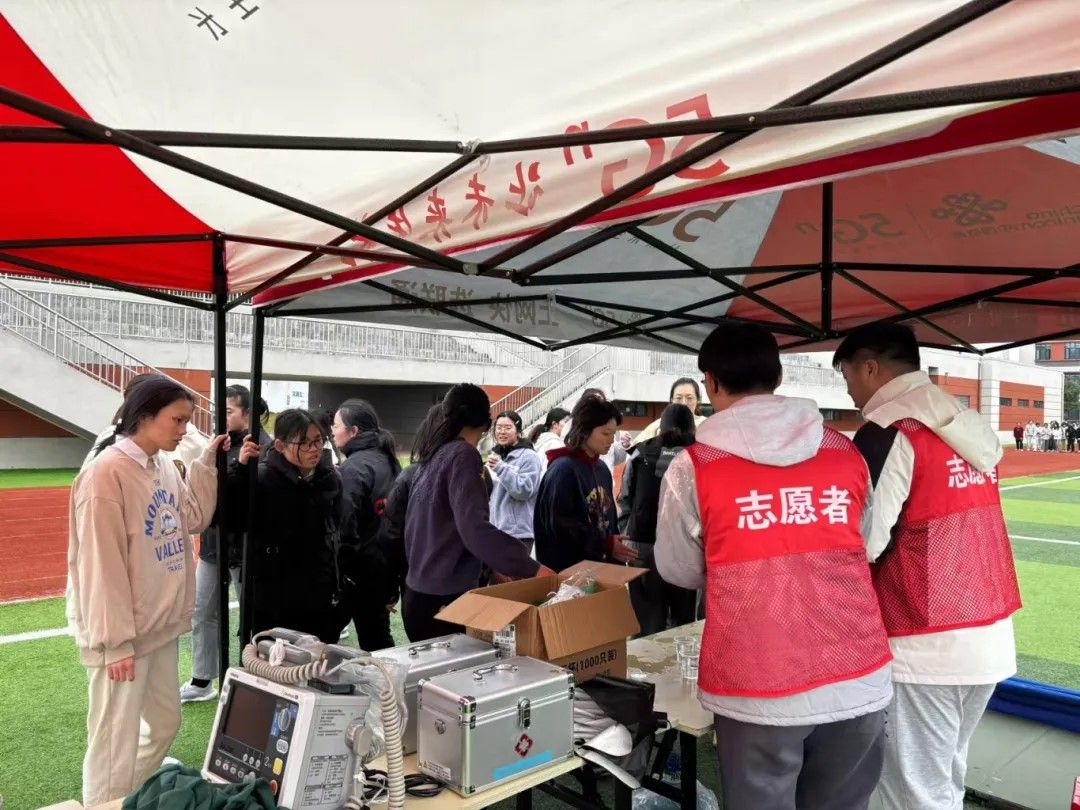 本次体质测试项目包括女生800米跑,男生1000米跑,男女50m跑,立定跳远,引体向上等。为确保体质健康测试的安全性与高效性,学院提前进行了详尽的规划部署,专门设立了医疗应急服务站,配备了急救箱、AED除颤器、担架等医疗设备、物资,还有医护人员和120急救车组全天候在岗待命,为应对可能的突发状况提供了坚实的保障。鉴于冬季气温较低,学院还特别为每位参测员工准备了红糖姜茶,这一举措不仅有效缓解了寒冷带来的不适,更传递了学院对员工健康的深切关怀。