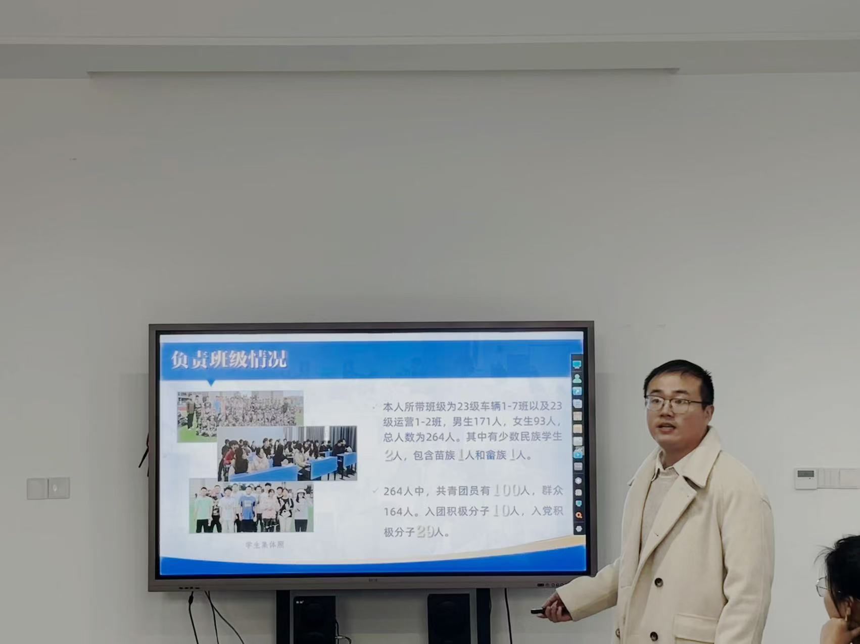 在工作述职环节,各辅导员结合自身工作情况,从开展思想政治教育、加强员工日常管理、夯实学风建设、提供就业指导服务等辅导员九大工作职责方面对一学年的工作进行汇报,总结履职情况、交流工作经验,展示自身工作特色与亮点,并提出今后工作的努力方向;在素质能力考察之“我生我认”环节,由学院考核小组在员工信息数据库中随机抽选,辅导员根据选中的员工照片,简述该生家庭情况、学业情况等基本信息,阐述自身对其开展过的教育引导工作。
