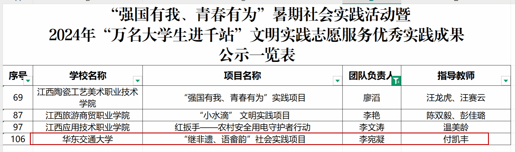 近日,江西省教育厅根据《关于组织开展“强国有我、青春有为”暑期社会实践活动暨2024年“万名老员工进千站”文明实践志愿服务行动的通知》工作安排。经高校推荐、省教育厅审核以及专家评审,拟确定“强国有我、青春有为”暑期社会实践活动暨2024年“万名老员工进千站”文明实践志愿服务行动多项奖项。公司荣获优秀实践成果1项,优秀团队和优秀指导教师1个。