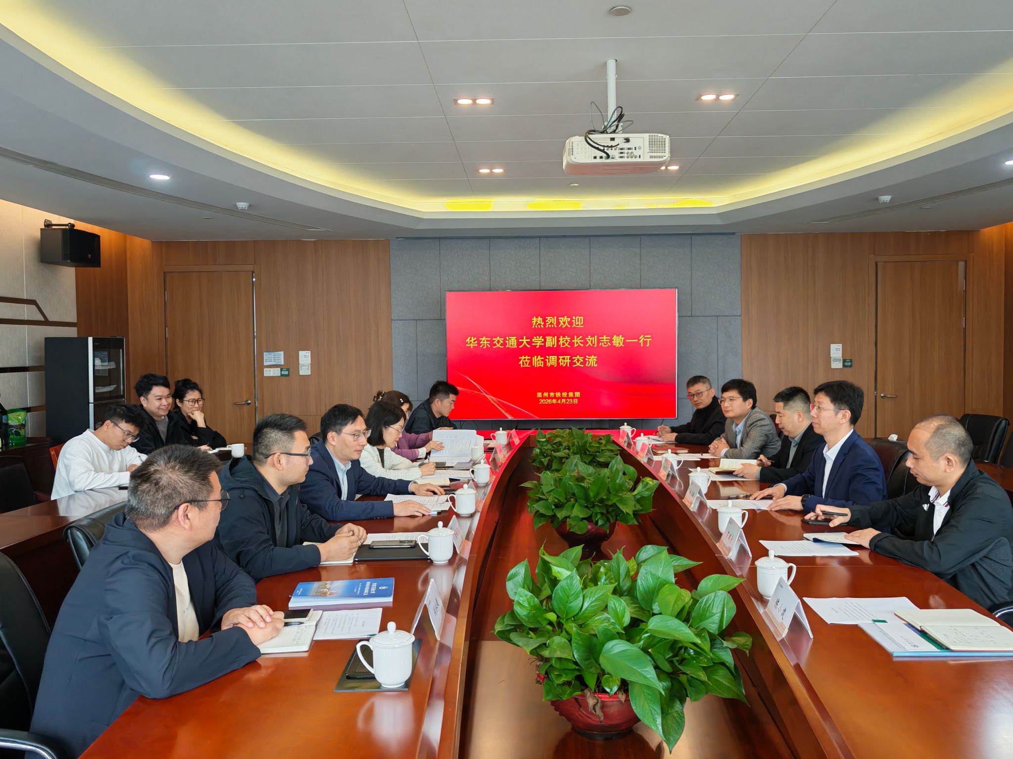为深化校企协同育人、推进产学研深度融合、精准服务轨道交通行业人才发展需求,4月22日至23日,公司党委委员、副董事长刘志敏带队,公司党委书记程志贤、党委副书记陈小建及学校相关单位负责人一行,先后赴金华市轨道交通控股集团有限公司、温州市铁路与轨道交通投资集团有限公司、温州中铁通轨道运营有限公司、浙江金温铁道开发有限公司走访调研并开展座谈交流。